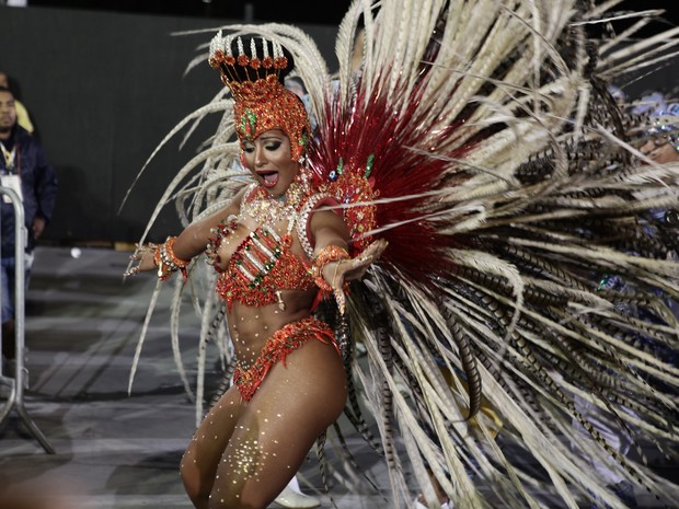A bela chamou a atenção com uma fantasia de pimentas. Clicada na avenida, seu umbigo pareceu diferente. “Na foto eu estava em movimento. Tenho umbigo alto. E a calcinha era muito pesada. Caiu para baixo. Isso pode ter causado a ilusão”, disse.