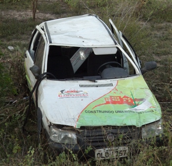 Um veículo da Fiat modelo Uno Mille da Prefeitura de Cansanção capotou na tarde desta sexta-feira (11), próximo à ‘Serra do Lajedo’, na BA-120, entre Santaluz e Queimadas. Cinco pessoas ficaram feridas, entre elas Renilta Moreira da Costa, de 55 anos, Evilane Ferreira Cavalcante, 44, Carla Karoline Cavalcante Alves, 19, e Suzana Ribeiro dos Santos, 27, além do motorista do veículo, identificado como Roniel Valdomiro Salvador, 36 anos. O veículo voltava de Feira de Santana.