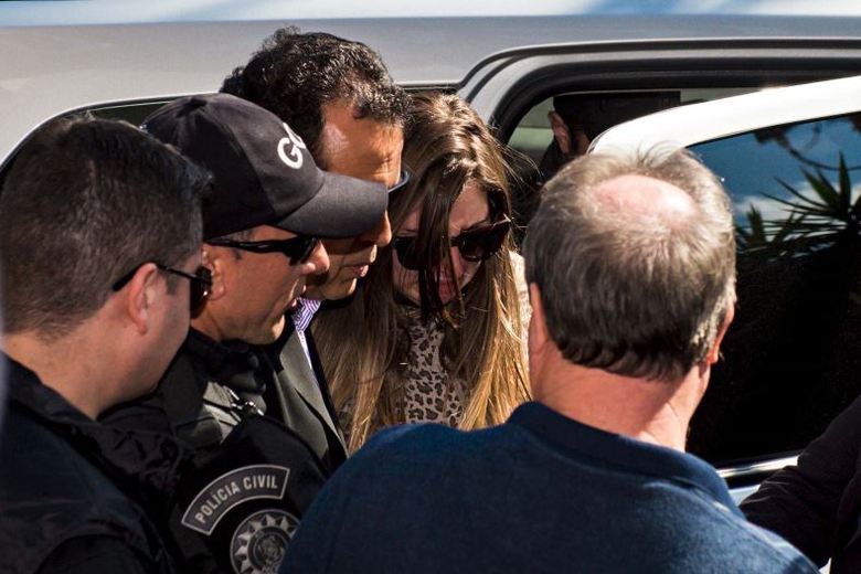 Patrícia Moreira chegou com segurança reforçada e chorando à 4ª Delegacia Civil de Porto Alegre para depor sobre os insultos racistas ao goleiro Aranha, do Santos, na última quinta-feira (28).