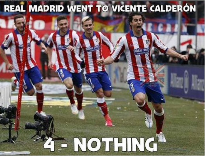 A goleada do Atlético de Madrid sobre o Real Madrid, por 4 a 0, neste sábado, gerou muitas brincadeiras na internet. O goleiro Casillas, que engoliu um frango no primeiro gol do jogo, de Tiago, é um dos alvos das zoações. Mas é claro que o trio "BBC" (Bale, Benzema e Cristiano Ronaldo) também não escapou... Veja algumas abaixo: