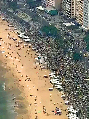 magem aérea mostra ato em Copacabana, no Rio de Janeiro. PM estima em 15 mil pessoas em manifestaçãoReprodução/TV Globo
